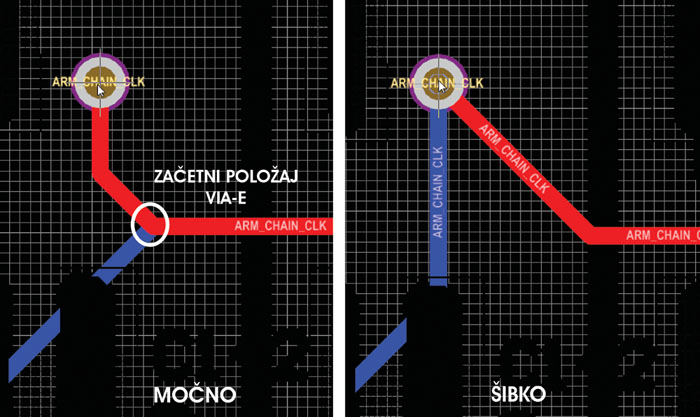 Barvanje netov na shematičnih dokumentih in poliranje vezic pri routanju
