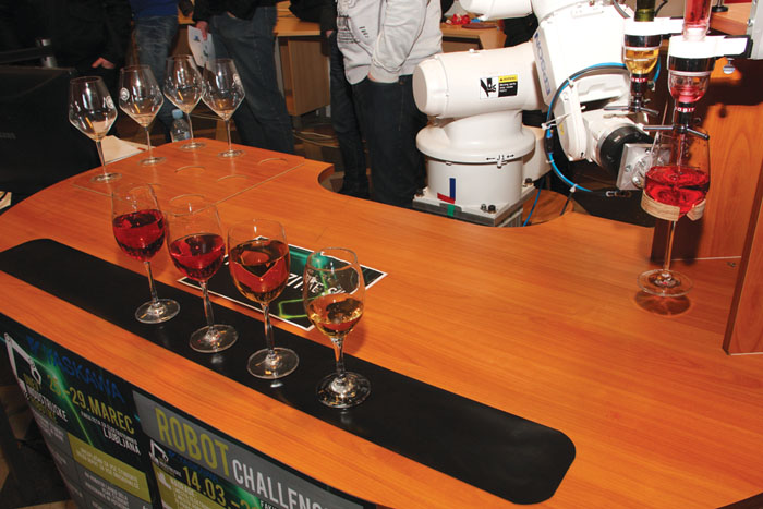 Od torka do četrtka smo v avli fakultete gostili štiri robotske celice, prav toliko pa tudi v prostorih dveh laboratorijev. Obiskovalce je ob vhodu najprej pozdravil robot podjetja Yaskawa, sprogramiran za igranje šaha. Obiskali so nas slovenski šahisti, ki so se pomerili v igri proti zahtevnim računalniškim algoritmom. Ogledali ste si lahko izjemno hitrega delta robota, ki je s hitrim premikanjem ukanil človeški vid in nam pričaral videz svetlobnih napisov ali pa robota natakarja, ki je natančno odmeril in postregel kozarce pijače, za nameček pa na njih zaigral znano melodijo. V sodelovanju z Eurobasket-om smo podelili precejšnje število kart za pripravljalne tekme slovenske košarkarske reprezentance. Organizirali smo nagradne tekme, kjer je moral udeleženec premagati košarkarskega robota v številu zadetih košev. Tudi drugače je bila aplikacija robotske košarke izredno obiskana in je požela navdušenje predvsem med mlajšimi obiskovalci. Udeleženec je lahko domov odnesel repliko svojega obraza iz umetne mase, če se je prepustil 3D skeniranju ter opazoval robota pri rezkanju. Na ostalih aplikacijah si je bilo mogoče ogledati industrijsko varjenje, glasovno vodenje mobilnega robota in hitro zlaganje kozarcev v piramido.