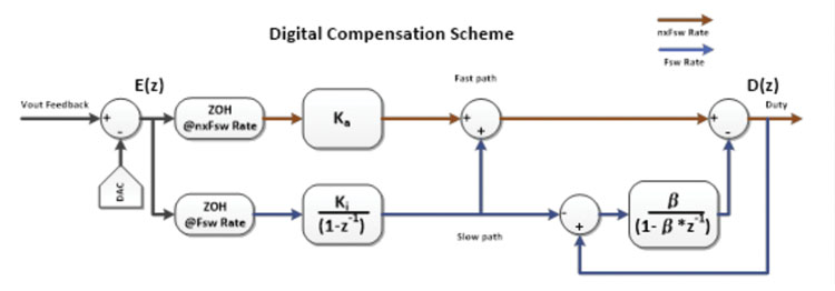 Ključno vprašanje pri vsakem pretvorniku je, da obstaja zamik med spremembami v zahtevah obremenitve in posledični izravnavi krmilnika PWM zaradi njegove diskretne narave. Posledica je inherentni kompromis v oblikovanju krmilne zanke. Da bi zagotovili stabilnost, se za preprečitev neželene izhodne napetosti in posledično tudi napake v regulaciji uporabi povprečenje. Počasnejši odziv na splošno poveča stabilnost sistema. Vendar zamik v odzivu na spremembe zahtev napajanja lahko privede do izgube regulacije, saj krmilna zanka, ki temelji na PWM, skuša dohajati. Pristop, ki skuša najti kompromis med tema dvema ekstremoma, je uporaba popravka dobitka sorazmerno z velikostjo napetosti pri napaki. Rezultat je izboljšana odzivnost, vendar na račun potencialne nestabilnosti.
