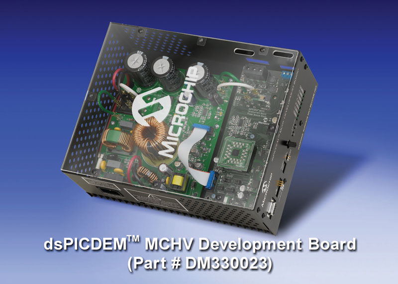 Novi dsPICDEM ™ MCHV Development System je edino industrijsko razvojno orodje za hiter razvoj in oblikovanje različnih visokonapetostnih aplikacij krmiljenja motorjev s sklenjeno povratno zanko z uporabo izmeničnih indukcijskih motorjev, brezkrtačnih enosmernih motorjev ali sinhronskih motorjev s trajnim magnetom. Razvojna ploščica ima vključeno vezje za razhroščevanje direktno v vezju, kar odpravlja potrebo po posebnem razhroščevalniku, kadar razvijamo z Microchipovo družino dsPIC33 DSC za krmiljenje motorjev. Poleg tega to orodje združuje preverjen sistem krmiljenja motorjev in korekcijo faktorja moči po predpisanih zahtevah.