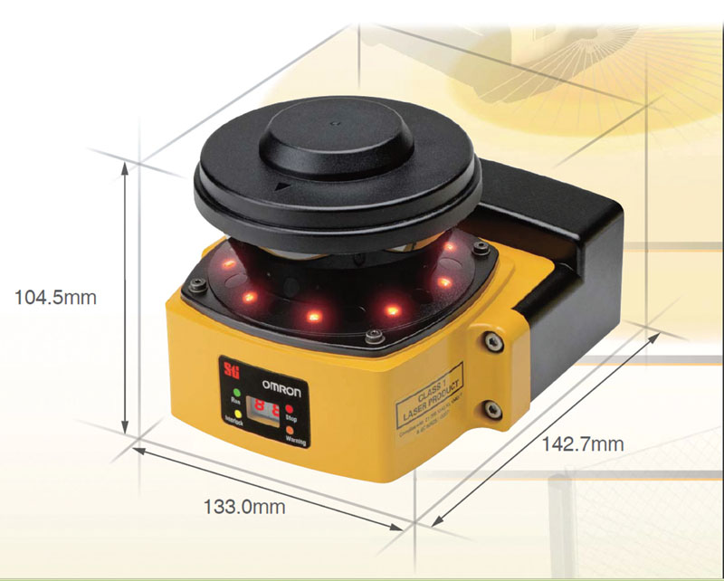 OS23C je trenutno najmanjši varnostni skener na svetu. Z dimenzijami 133mm x 143mm x 105mm in težo 1,3kg, ne potrebuje veliko prostora za montažo. Njegova poraba znaša 5W. Kljub temu lahko pokriva območje 270°, z zaznavno razdaljo do 10m (Slika 1). Nastaviti je možno varnostno območje do 3m in dve stopnji opozorilnega območja do 10m.