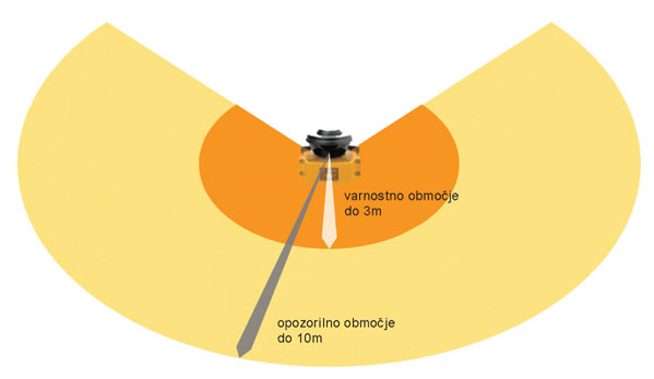 Zaznavno območje skenerja je možno razdeliti na (do) 70 posameznih sektorjev in vsakemu posebej definirati varnostno območje ter dve opozorilni območji (Slika 2).