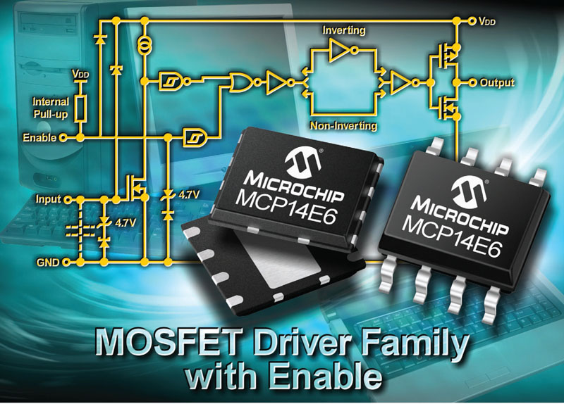 Razširjena družina MOSFET gonilnikov pomaga inženirjem zmanjšati porabo energije, sočasno pa ponujajo več funkcij, imajo manjša ohišja in so poceni. Novi dvojni gonilniki MCP14E6/7/8 so predvideni za maksimalno vrednost izhodnega toka 2A, medtem ko imajo dvojni gonilniki MCP14E9/10/11 največjo vrednost anodnega izhodnega toka 3A. Širok razpon delovne napetosti od 4.5 V do 18 V podpira širok razpon vhodne napetosti, medtem ko majhna ohišja znižujejo stroške zaradi manjše potrebne površine na ploščici.