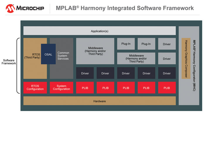 S tem, ko današnje aplikacije postajajo vse bolj prefinjene, morajo razvijalci ugnezdenih sistemov tudi kompleksne rešitve ponuditi trgu kar se da hitro. Microchip zagotavlja, da lahko s svojim MPLAB ogrodjem Harmony za mikrokontrolerje PIC32 zmanjša čas razvoja tipičnega projekta najmanj za 20-35 odstotkov, pri čemer zagotavlja enoten, zgoščen abstrakten in prilagodljiv vir s testirano, razhroščeno in interoperabilno programsko kodo.