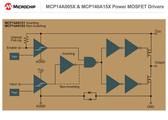 Nizek prag vhodne napetosti MCP14A005X in MCP14A015X močnostnih MOSFET-ov je združljiv z različnimi Microchip PIC® mikrokontrolerji in digitalnimi signalnimi procesorji (DSC) dsPIC® digitalnega signala tudi če delujejo pri nižjih napajalnih napetostih. To omogoča strankam načrtovanje aplikacij z mikrokontrolerji, ki na primer delujejo z napajalno napetostjo od 2,0 V naprej ter s pomočjo močnostnega MOSFET-a povečajo izhodni signal na 18 V, s čimer se zmanjšajo izgube v krmilniku in minimizirajo izgube prevajanja v samem močnostnem MOSFET-u. Prag proženja predstavlja neko ravnovesje med potrebo po imuniteti pred motnjami in sposobnostjo, da deluje s širšo paleto izdelkov za krmiljenje, vključno z Microchipovimi izdelki. Ti močnostni MOSFET-i so med drugim namenjeni uporabi v napajanju, za razsvetljavo, v avtomobilski industriji in trgih potrošniške elektronike, vključno z vgrajenimi pretvorniki energije, krtačnimi enosmernimi motorji, monopolarnimi koračnimi motorji ter elektromagneti, releji in ventili.