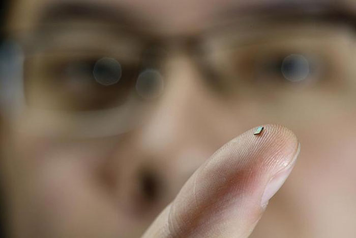 Za svoje delovanje senzor ne potrebuje niti baterij ali žic, pač pa samo brezžično omrežje. Z dimenzijami zgolj 2mm v premeru in s težo zrna peska je bil ta senzor opisan kot najmanjši na svetu. Ekipa Tehnološke Univerze v Eindhovnu je v drobceno ohišje stisnila VF anteno, ki sprejema energijo iz bližnjega ustrezno prirejenega brezžične usmerjevalnika. Senzor shrani energijo in ko jo je dovolj se vklopi, izmeri temperaturo in ta podatek pošlje v brezžični usmerjevalnik. Signalu se spreminja frekvenca v odvisnosti od temperature, kar brezžičn usmerjevalnik zazna in ustrezno pretvori v izmerjeno temperaturo.