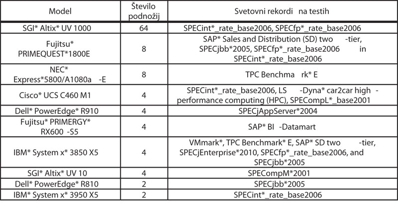 Podrobne informacije o rezultatih testiranj in svetovnih rekordih so na voljo na naslovu www.intel.com/performance/server/xeon_mp/summary.htm.