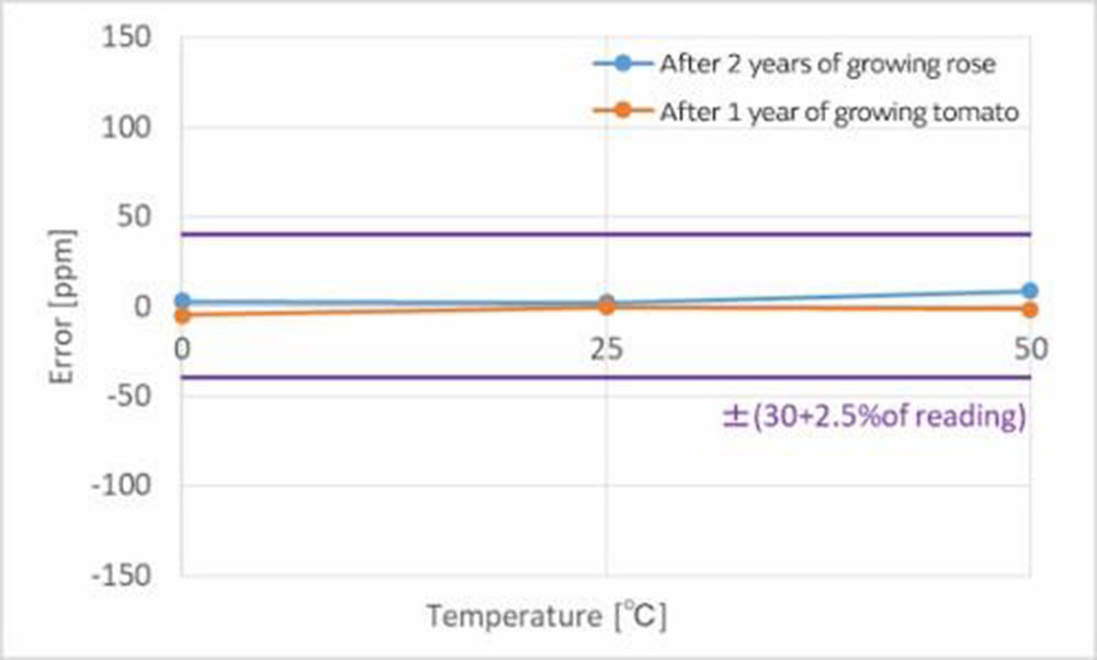 Na področju kmetijstva sta potrebna večji donos in izboljšanje kakovosti na enoto površine, saj se zaradi globalnega segrevanja in zmanjšanja števila kmetijskih delavcev zmanjšujeta donos in kakovost. Tehnologija za pospeševanje fotosinteze poljščin z uporabo CO2 je učinkovito sredstvo za reševanje teh izzivov. Poleg tega je zaradi nedavnega povečanja stroškov energije ključnega pomena učinkovita uporaba CO2 na podlagi meritev okoljskih podatkov. Zato imajo pri tehnologiji pospeševanja fotosinteze ključno vlogo zelo natančni CO2 senzorji, ki zagotavljajo dolgoročno stabilnost, ne potrebujejo umerjanja in so odporni na okvare.