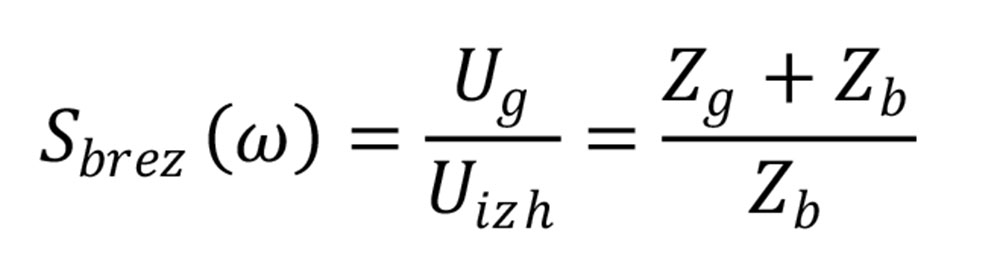 Za določitev vstavitvenega dušenja je potrebno najprej določiti dušenje motnje brez filtra, kar lahko ob poznanih impedancah enostavno določimo z upoštevanjem impedančnega delilnika, pri čemer je Uvh=Uizh, saj četveropola – filtra ni. Glej Formula 1.