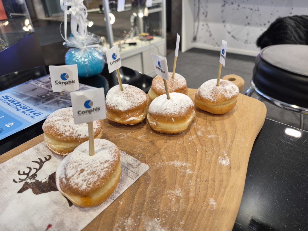 In ker se je sejem odvijal ravno v času pusta, so marsikateri razstavljalci na svojem razstavnem prostoru obiskovalce presenetili s krofi. Nekateri so bili prav simpatično majhni, kot te pri podjetju Conphis.