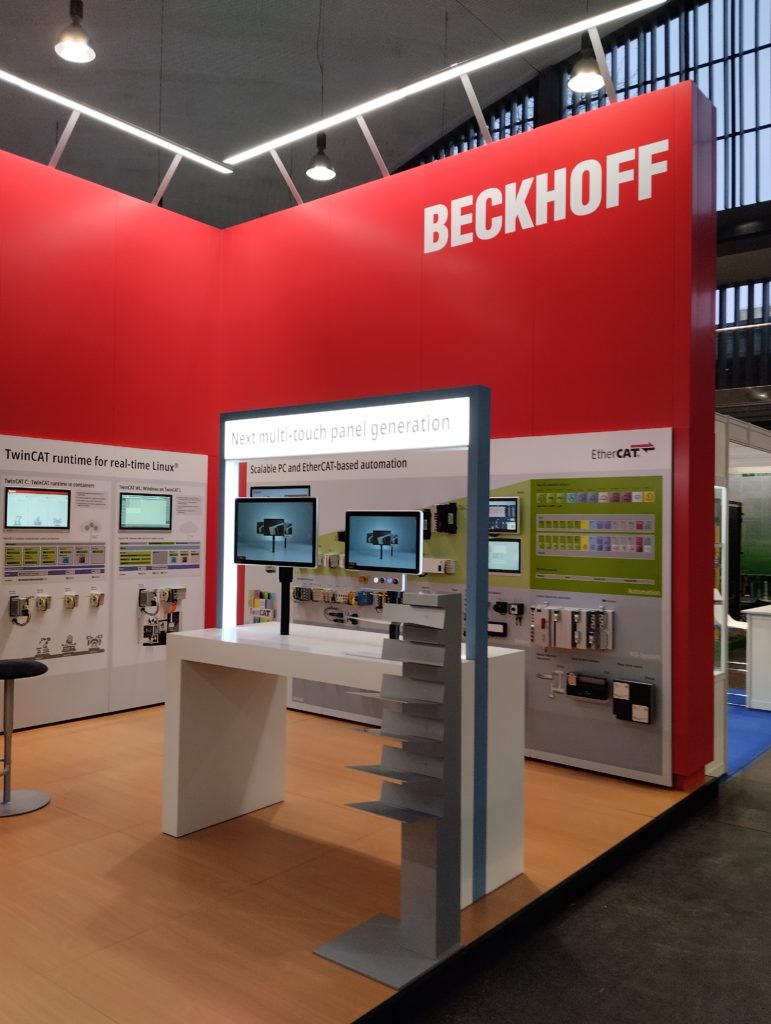 Na sejmu se je predstavilo tudi podjetje Beckhoff. Na področju industrijskih računalnikov je bil glavni poudarek na novi seriji panelov in panelnih računalnikov CP4xxx in CP5xxx, predstavljena pa sta bila tudi dva nova PC-krmilnika z Linux operacijskim sistemom, kar je novost v njihovi ponudbi. Poleg že obstoječe podpore za Windows in TwinCAT/BSD programska oprema TwinCAT sedaj podpira tudi RT Linux. Programski paket TwinCAT že nekaj let vključuje funkcionalnost za strojni vid, na sejmu pa je bilo mogoče videti tudi nove industrijske kamere in osvetlitev za strojni vid. Pri kamerah velja posebej izpostaviti kompaktno kamero s tako imenovano »liquid lens« tehnologijo in integrirano osvetlitvijo. Med novostmi na področju pogonske tehnike posebej izstopajo nova serija cenovno ugodnih servo pogonov AX1000 in frekvenčni pretvorniki AF1000 z EtherCAT komunikacijo. Še eno močno področje podjetja Beckhoff so vhodno-izhodne enote, katerih ponudba vključuje že prek 1000 proizvodov. Na področju vhodno-izhodnih enot je bil poudarek na novih 12-kanalnih modulih EL3475 za nadzor električnega omrežja in cenovno ugodnejši seriji EtherCAT modulov z oznako ED. Predstavili so tudi inovativen MX sistem, ki omogoča avtomatizacijo brez krmilne omare.
