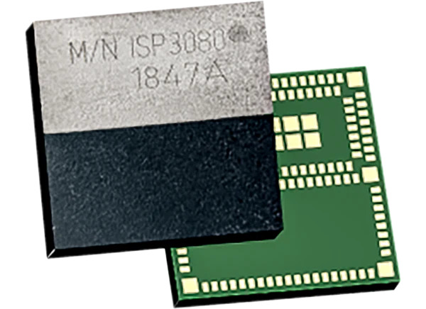 Insight SiP ISP3080 – miniaturiziran LGA modul (12 × 12 × 1,5 mm) z integrirano večpasovno anteno, Cortex™ M4 procesorjem, podporo Bluetooth 5.1 in možnostjo zunanje UWB antene.