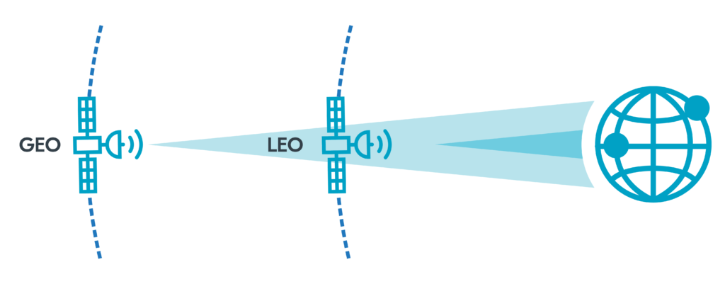 Za čim večjo učinkovitost komunikacije NTN uporablja dva satelitska sistema. Glede na posamezno uporabo imajo sateliti GEO in LEO različne prednosti in slabosti.
