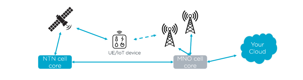 Novi ponudniki satelitskih storitev poleg infrastrukture v zemeljski orbiti ponujajo tudi mobilna jedrna omrežja. To omogoča dostop do mobilnih storitev prek satelitov. Za končne naprave to pomeni: končne naprave se lahko samodejno povežejo v satelitsko omrežje z uporabo SIM-kartic, ki podpirajo NTN, in obstoječih pogodb za mobilne telefone (MNO/MVNO) ali dinamično preklapljajo med zemeljskimi in satelitskimi omrežji, ko zemeljska pokritost ni na voljo.