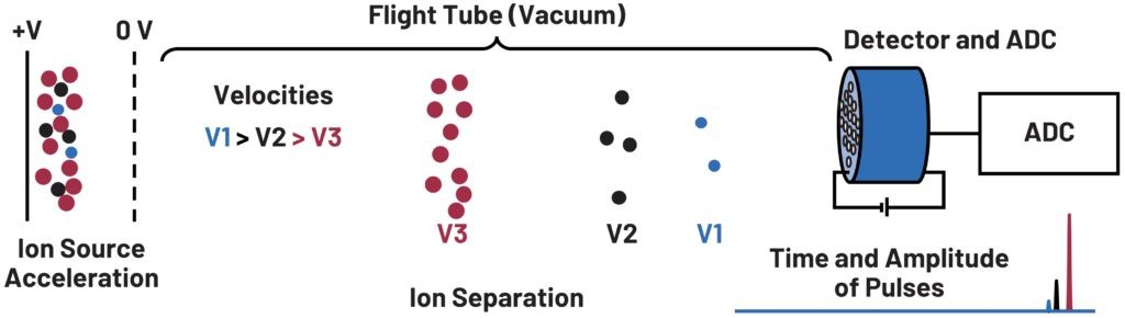 TOF-MS se opira na svoj zelo zmogljiv ADC podsistem, ki zanesljivo digitalizira impulz in določi njegov vrh, ki predstavlja čas prihoda vsakega ionskega sklopa in s tem maso tega tipa ionov. Ker je vsak vzorec ključen za določitev tega vrha, mora ADC podsistem zagotoviti hitrost gigavzorcev na sekundo (Gsamples/s), da zajame zadostno število vzorcev.