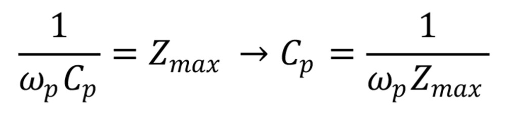 In npr. pri tisti frekvenci si želimo, da bi impedanca blokirnega kondenzatorja že prevladala in jo znižala. Torej izberemo kapacitivnost tako, da bo pri frekvenci ωp impedanca kondenzatorja tudi enaka Zmax F5.