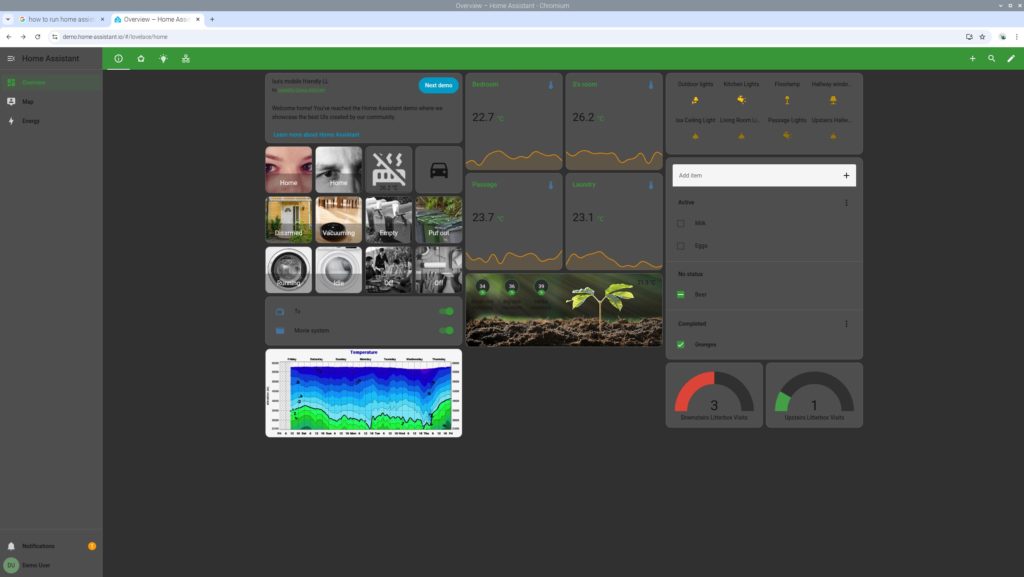 Začetek kompleksne avtomatizacije doma ni vedno lahek, še posebej, če se je lotevamo prvič. Na spletnem portalu demo.home-assistant.io je objavljenih več interaktivnih primerov inovativnih uporabniških namizij, ki jih lahko interaktivno preizkusimo brez nameščanja Home Assistanta, le sprememb ne moremo shraniti.