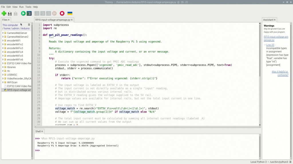 Umetna inteligenca bo program dejansko izdelala samo takrat, ko za rešitev našega problema v spletu še ni objavljenih ustreznih rešitev. Obenem opredeli pogoje za izvajanje in pripravi natančna navodila njeno namestitev in poganjanje. Denimo, če zahtevamo izdelavo programske kode za merjenje vhodne napetosti in toka Raspberry Pi 5, moramo imeti pravice uporabe programčka vcgencmd, ki ga nato Python3 uporabi, da pridobi vrednosti napetosti in toka, ki ju z napis in oznakami vrednosti izpiše na ekran, denimo: »Raspberry Pi 5 Input Voltage: 5.12843893 V«.