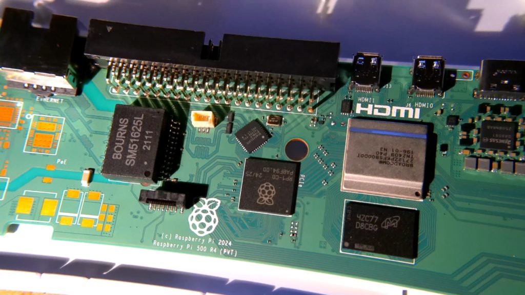 Če Raspberry Pi 500+ v celoti razdremo, opazimo da je tiskano vezje enako kot pri njegovem predhodniku, vendar manjkajo električni elementi sklopa za napajanje iz Ethernet vtičnice, ki ga proizvajalec verjetno ni implementiral predvsem zato, da okvirna cena računalnika ne bi presegla 200 USD.