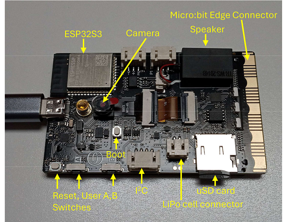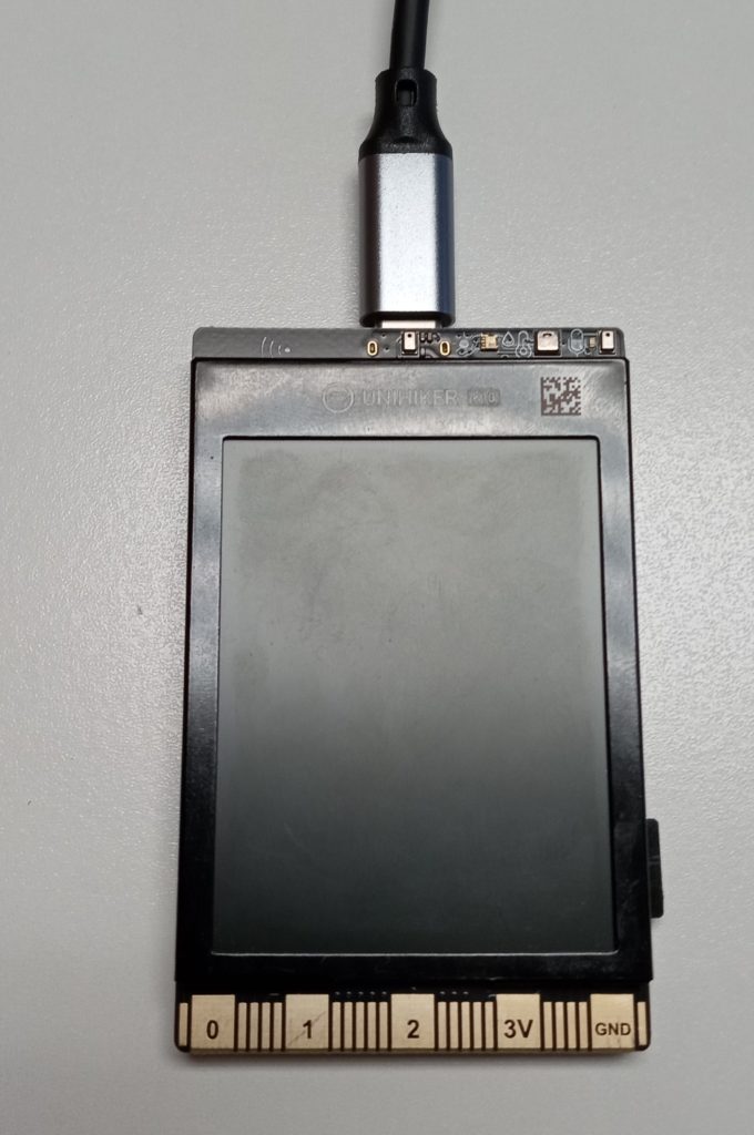 K10 se lahko napaja z USB-C kablom, kot je prikazano. Vsebuje tudi standardno 2-pin JST vtičnico, ki omogoča delovanje plošče na baterijsko napajanje, kot npr. 3,6-V LiPo celica. Vendar pa na K10 ni vezja za polnjenje LiPo. Namesto tega je na voljo regulator JW3651 Buck-Boost, ki je namenjen za vhodne napetosti med 3 V in 21 V in zagotavlja 3,3 V, potrebne za vezje K10. Podporno osebje pri UNIHIKER je povedalo, da se v izobraževalnem okolju zaradi varnostnih razlogov verjetneje uporabljajo AA-baterije namesto LiPo-baterije.