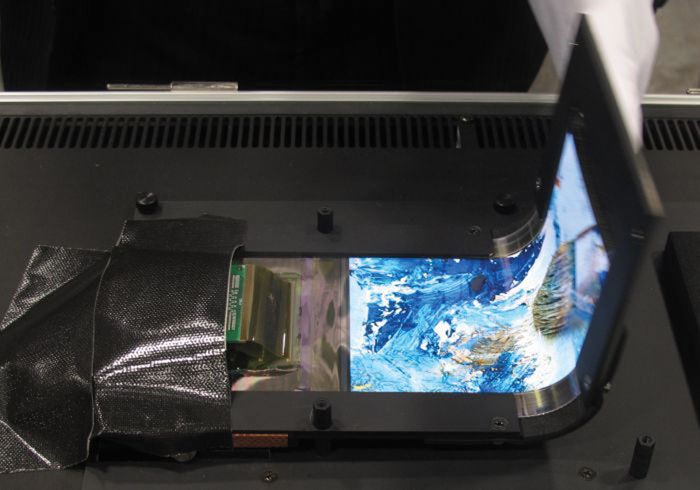 Ena od dveh vrst »pregibnega« zaslona je zaslon tipa „knjiga“, ki se lahko prepogne in zloži na dva dela. Druga vrsta je „trojni“ zaslon, ki se lahko zloži na tri dele. Ko so »razviti«, so videti kot običajni 5,9-palčni OLED zasloni. Zaslon ima 1280 x 720 slikovnih pik je in ločljivost 249 pik na inčo. Izdelali so jih s pomočjo „WTC“ strukture, ki združuje bele svetleče OLED in barvni filter.