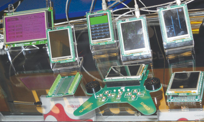 Druga novost na sejmu je bila predstavitev 14 novih ARM Cortex-M mikrokontrolerjev z več spomina in več periferije, kot npr. CAN in Hi-speed USB. Atmel je tudi izbranim obiskovalcem brezplačno podaril razvojno ploščo ATXMEGA A3BU-Xplained, sestro razvojne plošče, ki jo opisujemo v naši reviji. Seveda se je ena znašla tudi v naših rokah. Pri Atmelu so pripravili različne predstavitve njihovih ključnih tehnologij. Videli smo lahko hišno varnostno platformo s poceni ZigBee kamero z brezžičnim pasivnim IR (PIR) detektorjem gibanja, ki temelji na ARM ATMEL SAM3S ® Cortex-M3 ™ flash mikrokrokontrolerju.