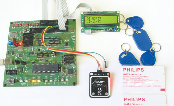 RFID tehnologijo smo v reviji Svet elektronike že malce opisali (SE120), avtor članka je tudi naredil čitalnik/pisalnik RFID kartic, ki delujejo na frekvenci 125 kHz. RFID modul, ki ga bom tokrat predstavil deluje s karticami, ki delujejo na frekvenčnem območju 13,56 MHz. Tako modul kot tudi kartice omogočajo branje/pisanje podatkov v kartice in še marsikaj.