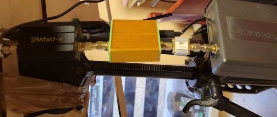 Uporabil sem različne konfiguracije opreme. Poizkusil sem najprej z nizkoproračunskim LNA (nizkošumni Low Noise Amplifier) in filtrom za 1,4204 GHz, ki sem ju priključil na RSP1A. Nato pa sem poizkusil še z LNA Nooelec SAWbird+H1 in dodatnim LNA in filtrom, priklopljenima na RSP1a (slika 3).