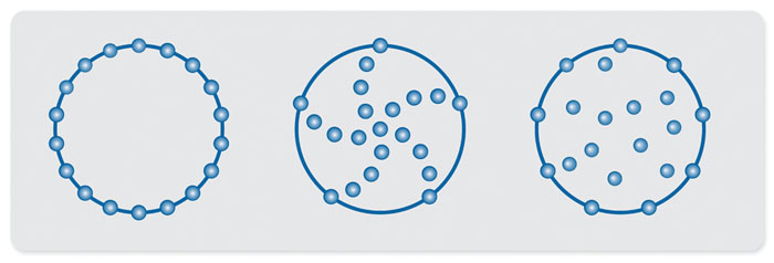 Polja mikrofonov za oblikovanje snopa so vedno krožna in imajo tri glavne vzorce: naključno, spiralno ter v obliki prstana. (Polja mikrofonov za metodo NAH so vedno pravokotna.) Polje v obliki prstana deluje dobro, kadar ne poznamo točne razdalje do vira, vendar mu manjka dinamični razpon. Spiralno polje daje boljše rezultate, vendar boste na splošno dosegli najboljše rezultate z naključno postavitvijo tipal po polju, saj to zagotavlja največjo gostoto polja mikrofonov in omogoča največji dinamični razpon meritev [3].